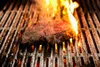 Steak cooking on the open flame of a grill at Manna Cafe & Eatery in Hazlehurst, GA | Photographed by commercial photographer, Daniel Shippey